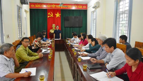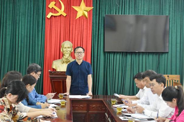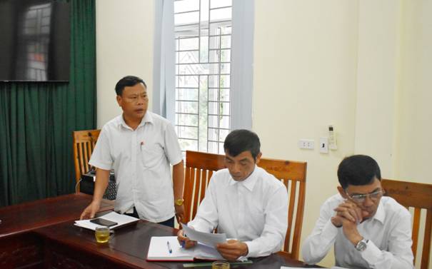 Đồng chí Nguyễn Văn Bảy, Phó Bí thư Đảng uỷ, Chủ tịch UBND xã phát biểu tại buổi làm việc