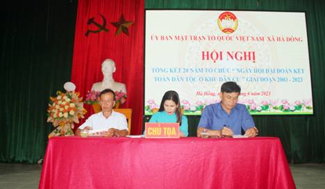 Chiều ngày 14/6, UBMTTQVN xã Hà Đông tổ chức tổng kết 20 năm Ngày hội Đại đoàn kết toàn dân tộc giai đoạn 2003-2023. Dự tổng kết có đại diện MTTQ huyện; lãnh đạo xã Hà Đông, các ban ngành đoàn thể, trưởng ban công tác MT, các tập thể cá nhân tiêu biểu.