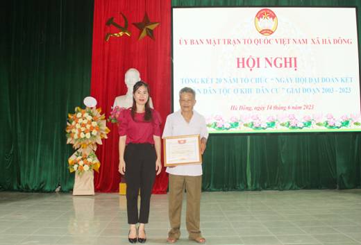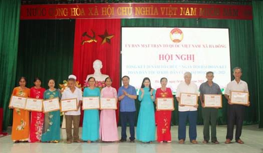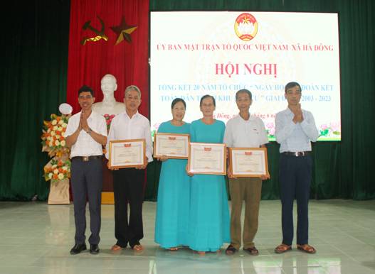 Nhân dịp này, Ủy ban Nhân dân xã Hà Đông đã khen thưởng 4 tập thể và 13 cá nhân có thành tích xuất sắc trong 20 năm tổ chức Ngày hội Đại đoàn kết toàn dân tộc giai đoạn 2003-2023.