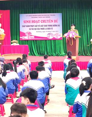 Trung tá Nguyễn Văn Hưng, Phó trưởng công an xã Hà Đông đã có buổi tuyên truyền, phổ biến, giáo dục pháp luật về tác hại của thuốc lá điện tử cùng thầy và trò nhà trường, cung cấp nhiều thông tin hữu ích giúp các em nhận diện và hiểu được những tác hại của thuốc lá nói chung và thuốc lá điện tử nói riêng.