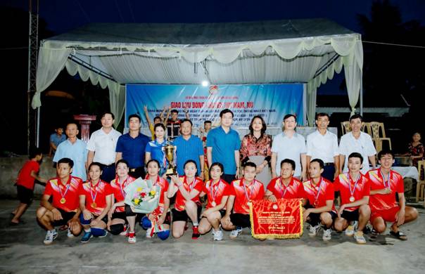 Các đồng chí lãnh đạo xã trao giải cho các đội đạt giải