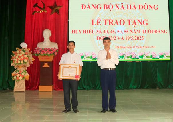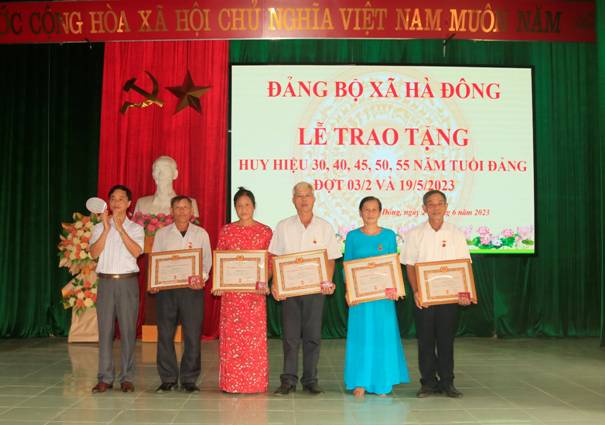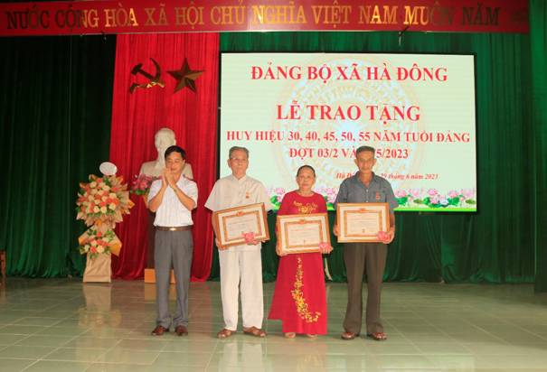Tại buổi lễ, đã thông qua Quyết định tặng huy hiệu Đảng đợt 3/2 và 19/5. Trong 2 đợt Đảng bộ xã Hà Đông có 10 đảng viên được nhận Huy hiệu Đảng. Trong đó có 03 đảng viên nhận Huy hiệu 55 năm, 01 đảng viên nhận Huy hiệu 50 năm, 01 đảng viên nhận Huy hiệu 45 năm, 04 đảng viên nhận Huy hiệu 40 năm, 01 đảng viên nhận Huy hiệu 30 năm.
