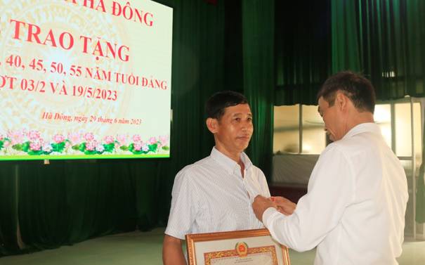 Đảng bộ xã Hà Đông tổ chức trao Huy hiệu Đảng đợt 03/2, 19/5/2023 và sơ kết công tác Đảng 6 tháng đầu năm, triển khai nhiệm vụ 6 tháng cuối năm 2023